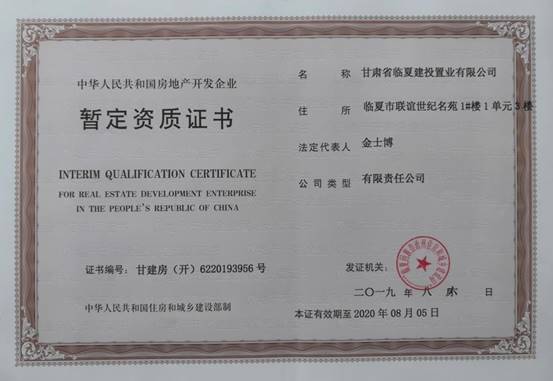 近日,臨夏公司正式取得房地產開發暫定資質證書。該證書的取得標志著公司正式進入臨夏房地產開發市場。