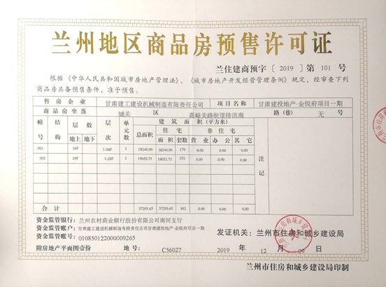 近日,甘肅建投地產·金悅府項目一期成功取得《商品房預售許可證》,為項目后續工作的開展奠定了堅實基礎。
