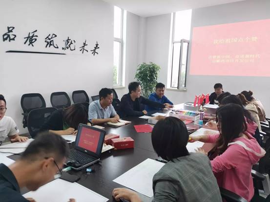 9月9日下午,百酈灣項目臨時黨支部在營銷中心會議室組織開展“我給祖國點個贊”制作趣味手抄報活動,置業公司工會主席、副總經理、百酈灣項目開發公司經理石磊與項目公司14名員工共同參與了活動。