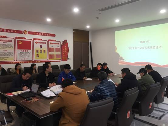 12月7日,成都公司黨支部組織各部室員工及施工單位、監理單位相關人員開展了“憲法進項目”主題黨日活動。此次主題黨日活動由成都公司黨支部書記馬臻奇主持,活動主要學習了三項內容,一是學習置業公司關于做好2019年國家憲法日及憲法宣傳周有關工作的通知;二是學習《中華人民共和國憲法修正案》;三是學習習近平總書記有關憲法、全面依法治國的講話精神。