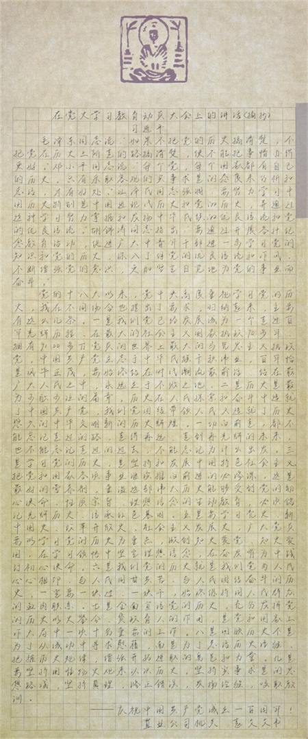 置業機關 趙文文 硬筆書法《在黨史學習教育動員大會上的講話(摘抄)》