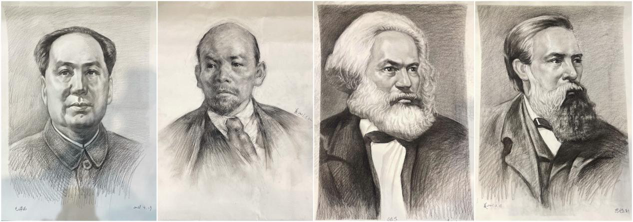 繪畫作品別具匠心,用色彩與線條描繪黨的苦難曲折與百年輝煌。
