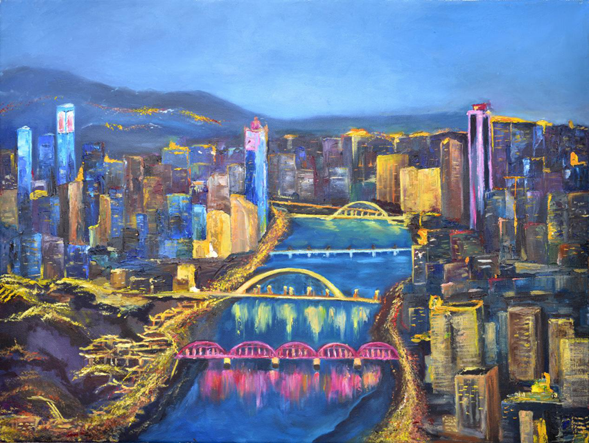 置業機關 藺智 油畫《夜幕蘭州》
