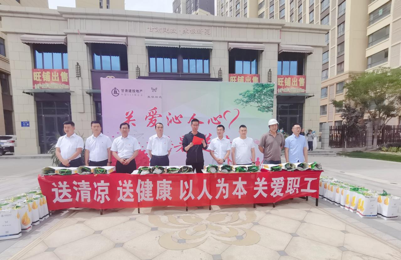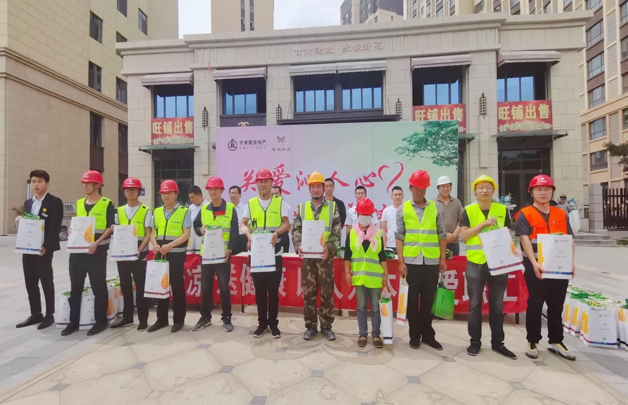 參加本次活動的有華蘭監理、甘肅九建、甘肅七建、甘肅三建、宜居陽光物業、省安裝、潤達園林等參建單位。活動中,首先由武威分公司副經理楊杰及甘肅九建四分公司副經理陳存財致辭,表示對奮戰高溫一線的建設者和勞動者致以崇高的敬意和親切的慰問。希望廣大工程建設者將這份關懷轉化為工作動力,做到堅定不移聽黨話、跟黨走,繼續發揚不怕苦、不怕累、攻堅克難、勇于創新的精神,以更加飽滿的熱情堅守自己的工作崗位,確保聚銀新苑項目順利交工,以此向建黨100周年獻禮。