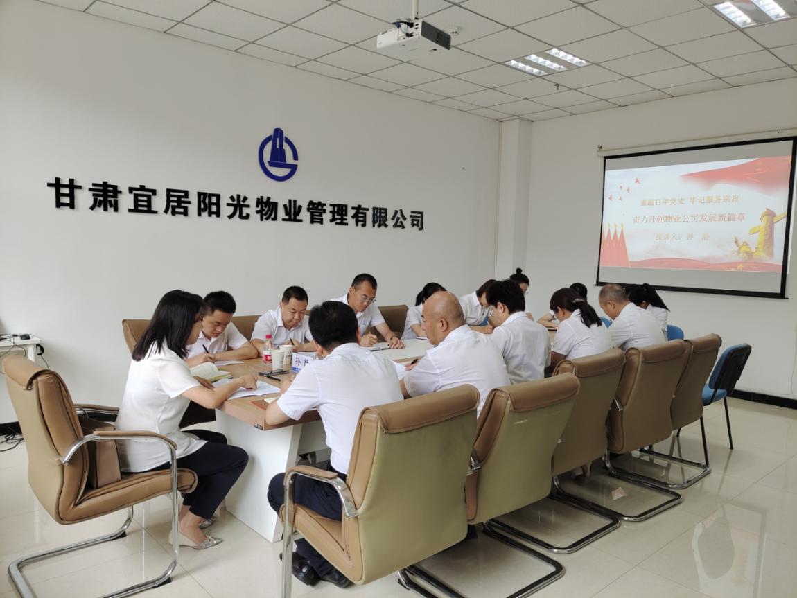 7月14日上午,置業公司黨委委員、工會主席孫靜在宜居陽光物業公司開展了“重溫百年黨史·牢記服務宗旨,奮力開創物業公司發展新篇章”的黨史學習教育專題黨課,物業公司機關全體黨員、管理人員及蘭內物業服務中心主任參會。