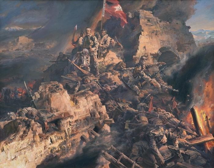 1月中旬,在大炮的配合下,敵軍向高臺(tái)城發(fā)起猛攻。董振堂指揮紅5軍奮起反擊。由于敵軍攻勢猛烈,紅5軍只能逐步退入城內(nèi),以城墻、城樓為屏障,抗擊敵人。紅軍用手榴彈、石塊和敵人搏斗,整整堅(jiān)持了4天,沒有援兵,子彈已所剩無幾,拼著性命和馬家軍肉博,殺敵600多人。到第8天,紅軍已彈盡糧絕。敵人仗著人多勢眾,用“人海戰(zhàn)術(shù)”不停地攻城,指戰(zhàn)員們用刺刀、槍托奮力拼殺,堅(jiān)持浴血奮戰(zhàn)。敵人架設(shè)云梯登城,戰(zhàn)士們就用木椽挑開,甚至用開水往下澆。他們打退了敵人的一次又一次進(jìn)攻,使兩千多敵人在城下喪命。從1月12日至20日,整整九天九夜,紅5軍將士與十倍之?dāng)愁B強(qiáng)拼殺,除少數(shù)人突圍外,大部壯烈犧牲,高臺(tái)城被敵人攻陷。
