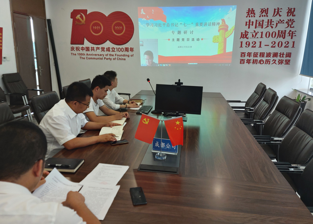 9月6日,成都公司黨支部組織全體黨員開展學習習近平總書記“七一”重要講話精神專題研討主題黨日活動,支部書記通過視頻形式主持會議。