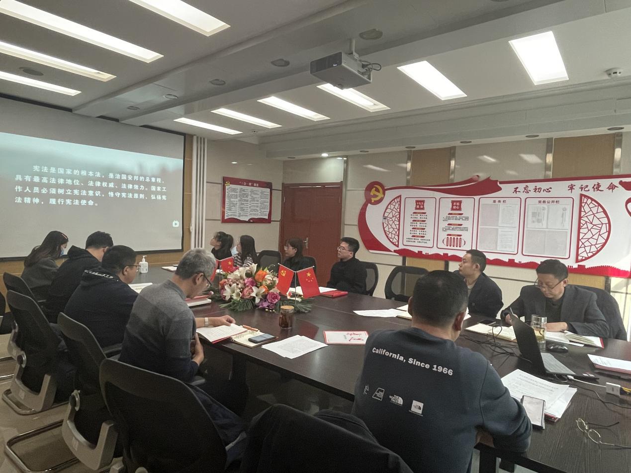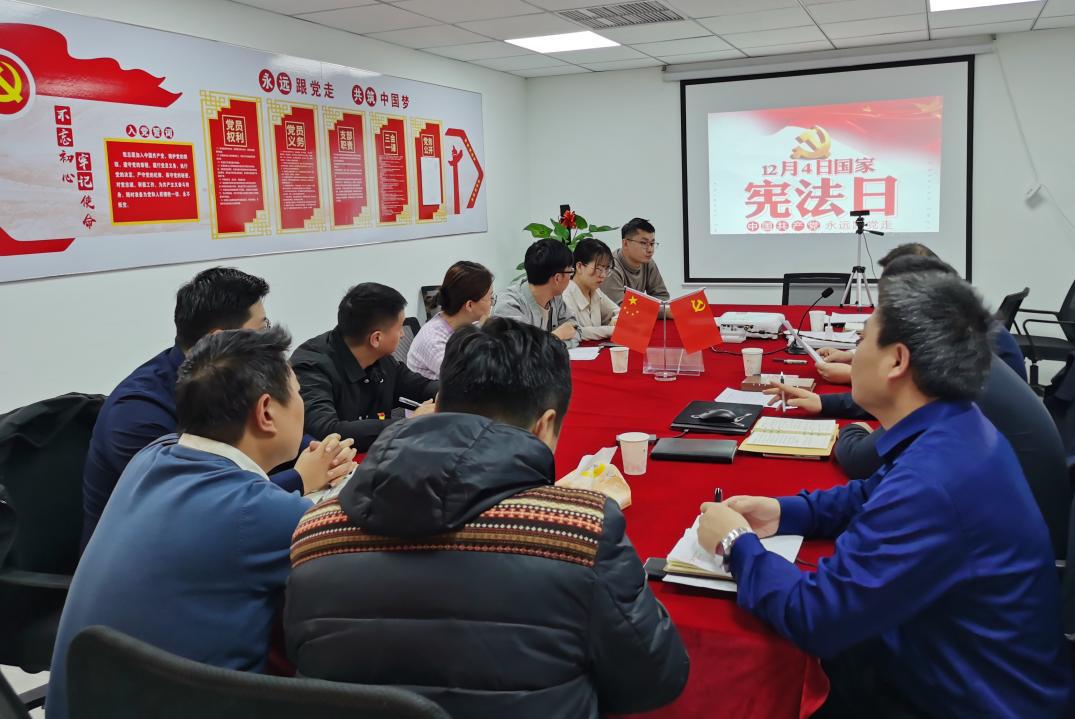 天津片區支部組織全體職工開展憲法宣傳教育活動,弘揚憲法精神。支部書記帶領全體職工集中學習習近平總書記法治思想相關重點內容,領略國家法治建設成果和制度,全面推進依法治國不斷深化。在學習理論的基礎上,一同觀看“宣傳憲法,守護法治”專題片,通過案例了解如何維護憲法權威,保障合法權益。會后,針對學習內容支部組織全體職工進行憲法理論知識測試,進一步鞏固和強化理論學習成果。
