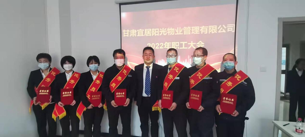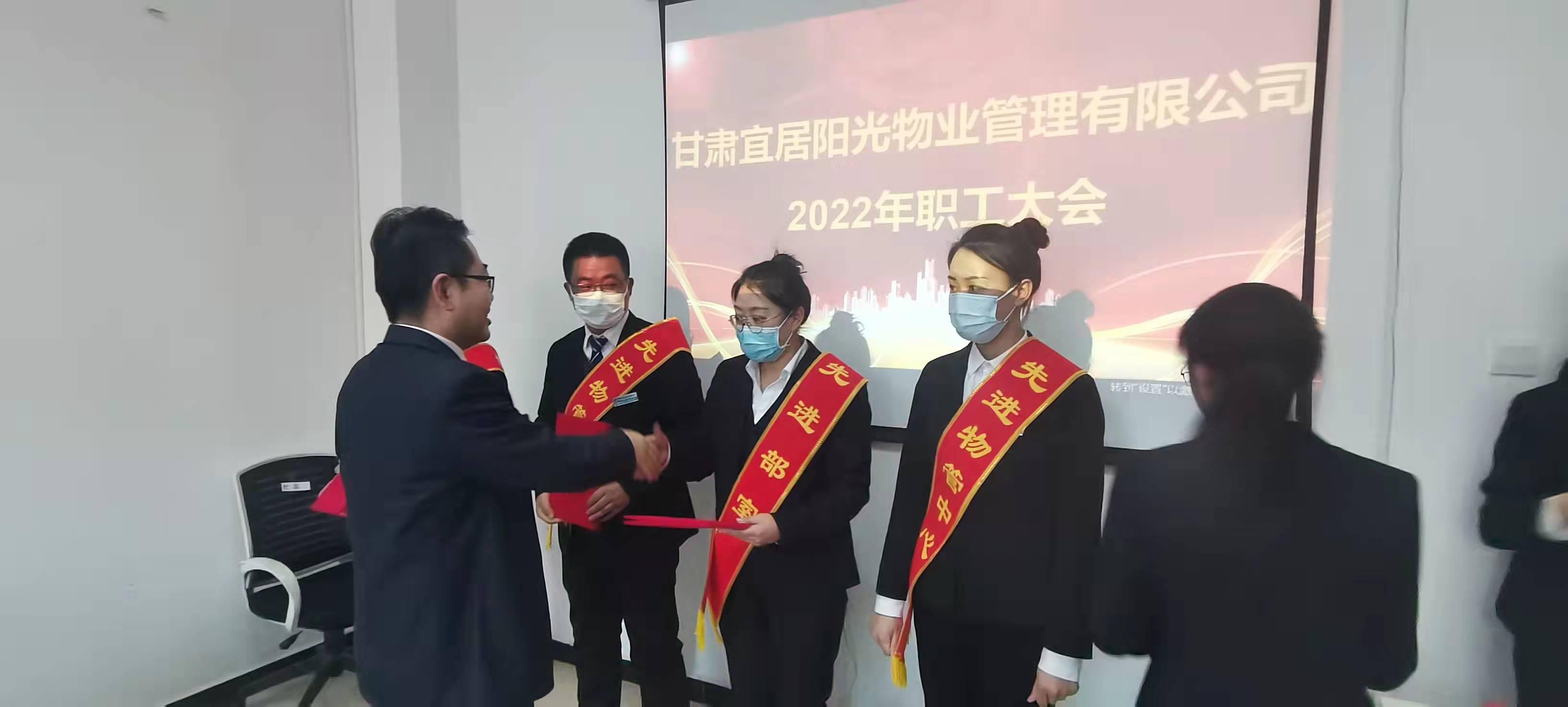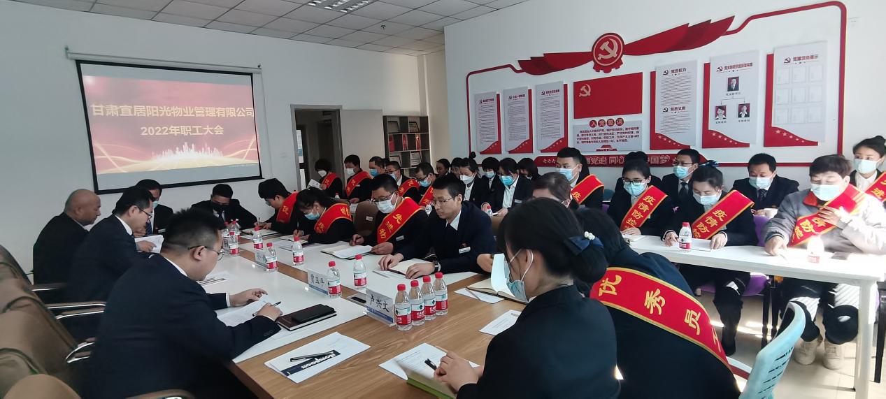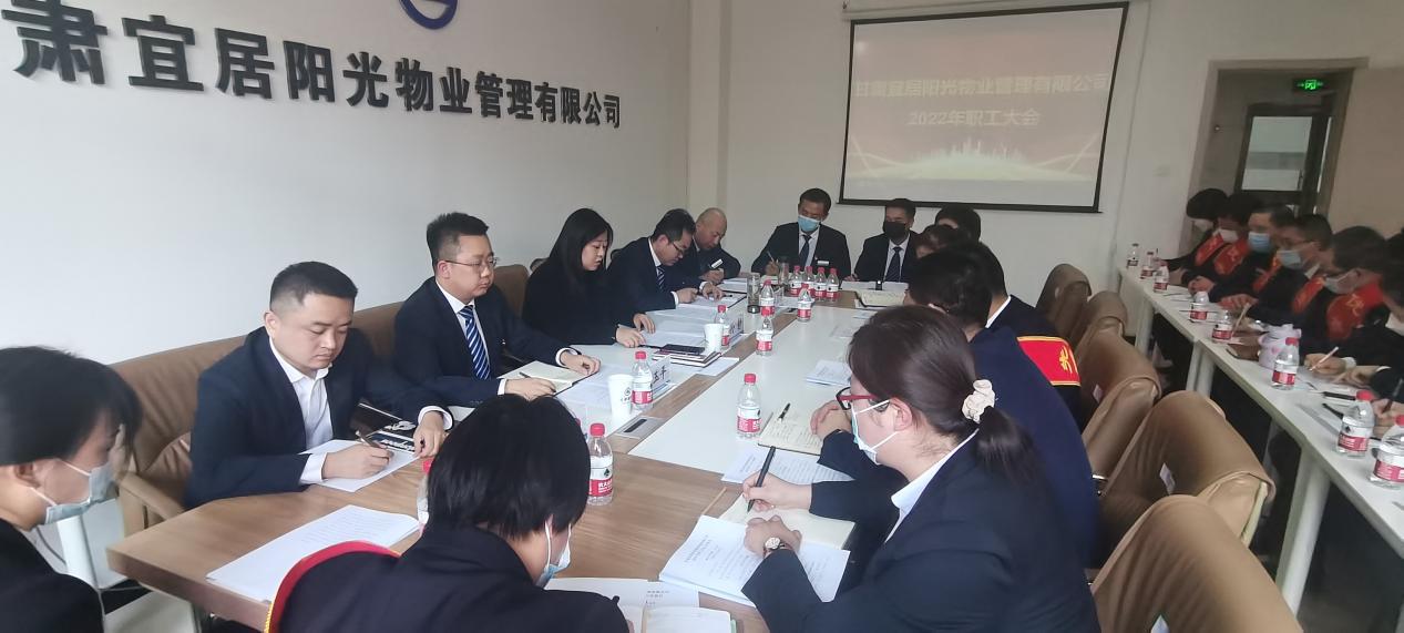 2月24日下午,甘肅宜居陽光物業管理有限公司召開職工大會,物業公司班子成員、物業公司機關全體人員、各物業中心主任及受表彰人員代表共40余人參加會議。置業公司紀委書記、工會主席、監事會主席孫靜到會指導并做講話。