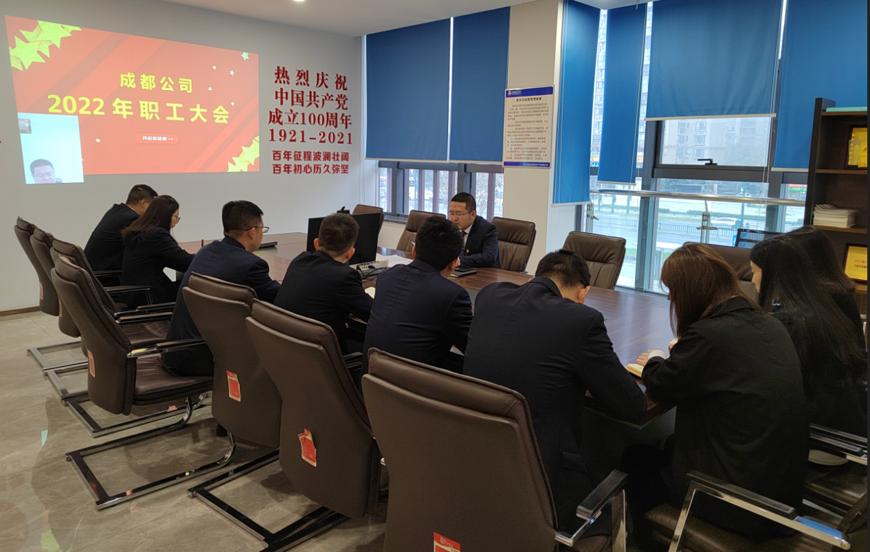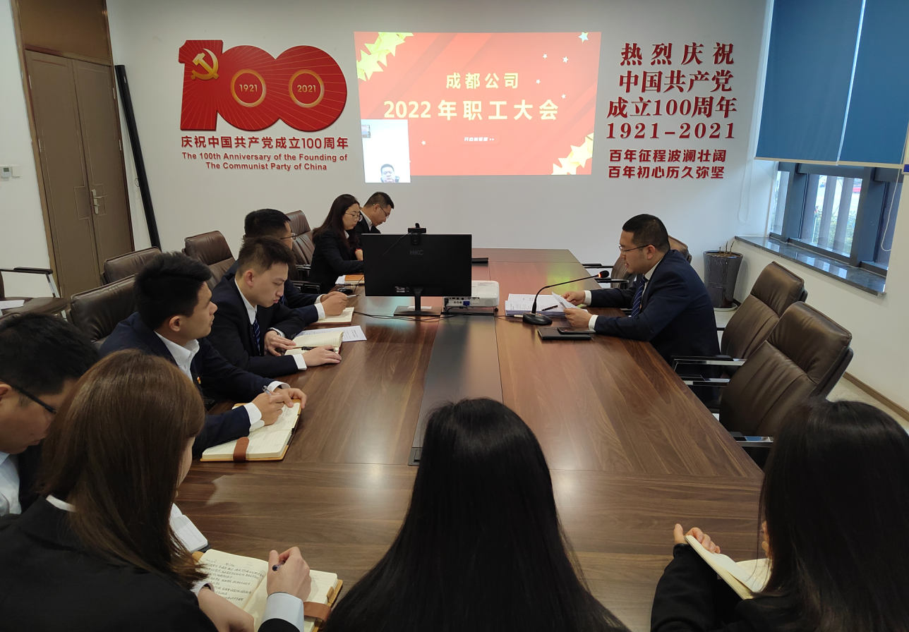 3月2日,成都公司召開(kāi)2022年職工大會(huì),置業(yè)公司黨委委員、副總經(jīng)理馬臻奇通過(guò)視頻形式出席會(huì)議,成都公司全體職工參會(huì)。