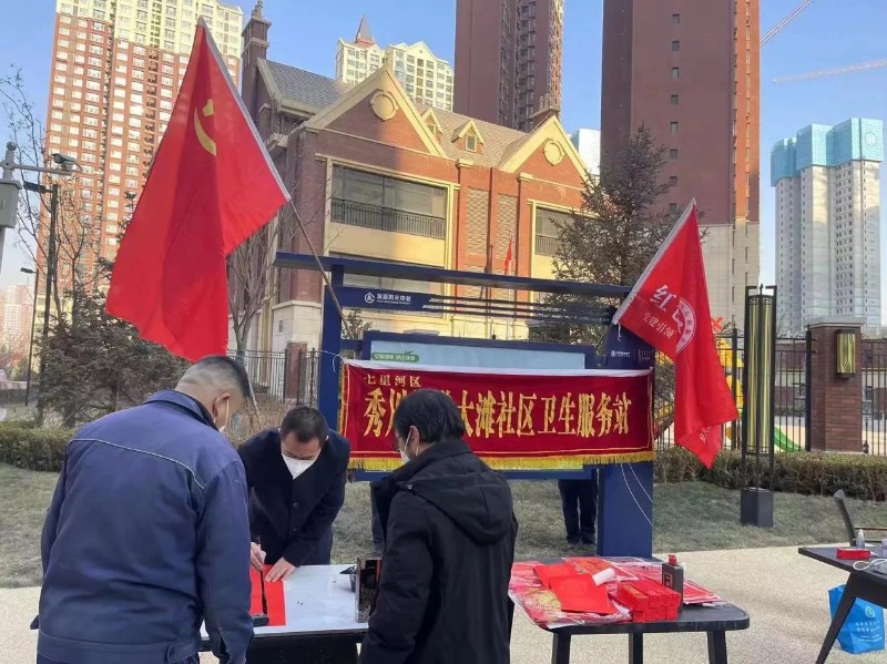 寫春聯(lián)、貼福字,是中國人過年的傳統(tǒng)習俗,象征著吉祥如意,是人們表達向往美好生活的一種方式。春節(jié)將至,為豐富小區(qū)文化生活,營造健康祥和、積極向上的文化氛圍和節(jié)日氣氛,提前為業(yè)主們送上新春的祝福,百酈灣物業(yè)服務中心于1月2日,特邀請小區(qū)部分書法愛好者業(yè)主們,舉辦了“迎新春、送春聯(lián)”新春送福活動。同時邀請秀川街道大灘社區(qū)衛(wèi)生服務站的醫(yī)護人員現(xiàn)場為小區(qū)眾多老年人免費測量血壓、測血糖,吸引了業(yè)主們踴躍參與。