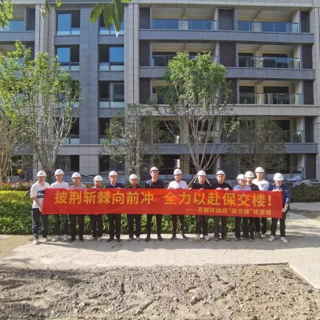 2023年4月30日,應公司號召由10名各專業技術人員組成的百酈玲瓏府“保交樓”攻堅組人員抵達杭州。在第73個中國勞動節,5月1日入駐現場召開工作安排部署會,主要圍繞項目安全生產、成本控制、項目管理、設計管理、物業管理、資產運營管理、信訪維穩等方面。針對本次任務重、時間緊的現狀,按照“一樓一策一專班”責任到人,以“專事、專人、專職、專業、專責”為原則展開工作,攻堅組每周召開一次工作例會,匯報工程進展情況,協調解決存在的問題,制訂下周工作計劃,全力以赴與杭州子公司全體人員,有力推進保交樓工作。