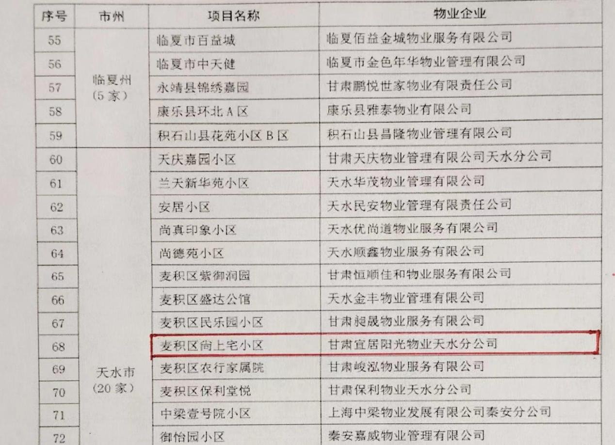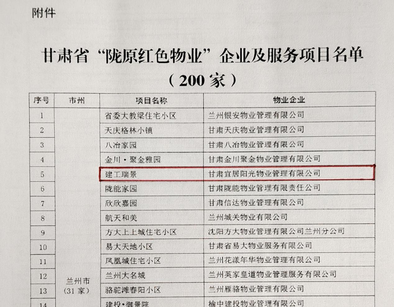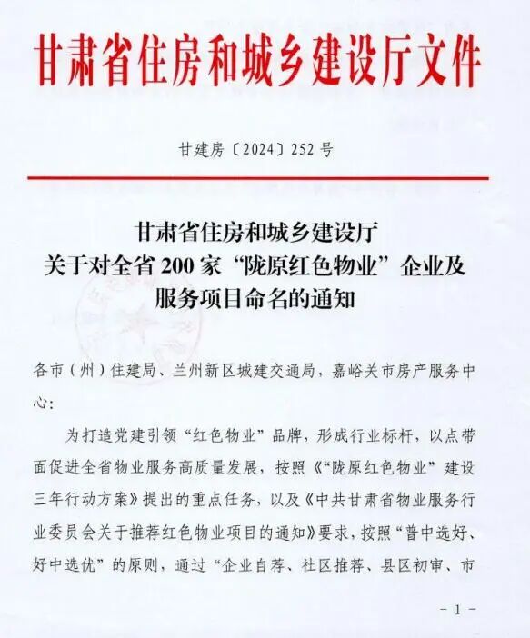 近日,甘肅省住房和城鄉(xiāng)建設(shè)廳隆重發(fā)布了《關(guān)于對全省200家“隴原紅色物業(yè)”企業(yè)及服務(wù)項目命名的通知》,以打造“黨建引領(lǐng)紅色物業(yè)”品牌、形成行業(yè)標(biāo)桿,以點帶面促進全省物業(yè)服務(wù)高質(zhì)量發(fā)展等作為評選要求,按照“普中選好、好中選優(yōu)”的原則,經(jīng)過層層篩選,甘肅宜居陽光物業(yè)公司“建工瑞景、上尚宅”2個小區(qū)榜上有名,甘肅宜居陽光物業(yè)公司成功獲評甘肅省“隴原紅色物業(yè)”企業(yè),宜居陽光物業(yè)所屬“建工瑞景、上尚宅”2個小區(qū)成功獲評甘肅省“隴原紅色物業(yè)”服務(wù)項目 。