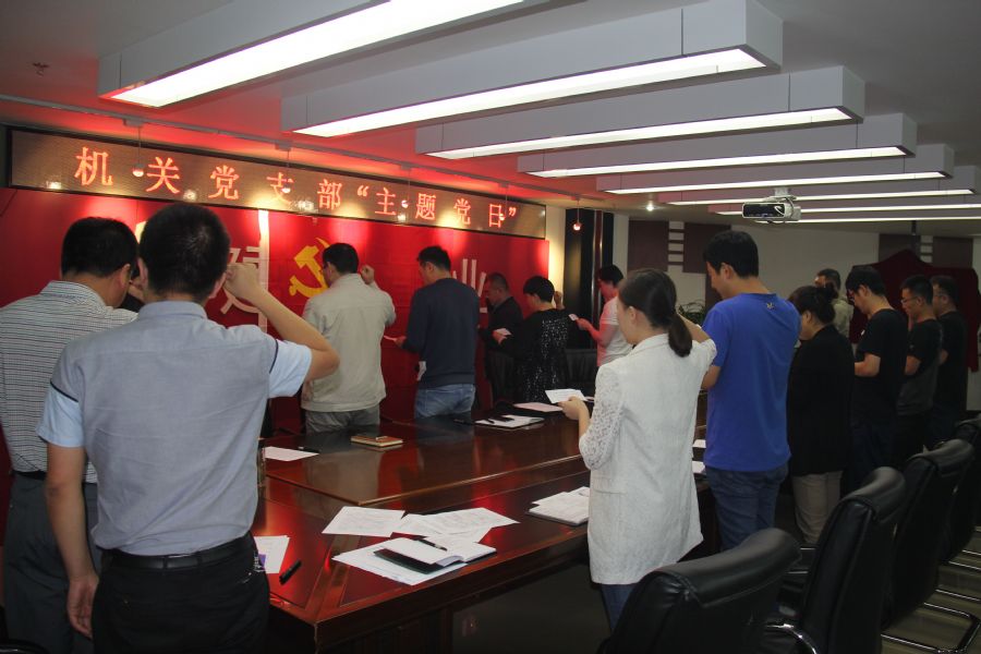 活動現場設置了會標,懸掛黨旗,機關全體黨員在黨旗下重溫入黨誓詞,3名黨員重溫了入黨志愿書,并認真學習了習近平總書記7.26重要講話、習近平總書記視察甘肅時提出的“八個著力”、廖俊波同志先進事跡納入“兩學一做”學習教育常態化制度化重要內容、《習近平總書記對國企黨建工作提了哪些新要求》,在學習過程中,機關黨員積極交流發言、認真做好學習筆記。最后,按照活動方案,機關黨支部書記對本次活動做了總結,并對全體黨員進行了對習近平總書記7.26重要講話精神答題測試,確保了學習效果。