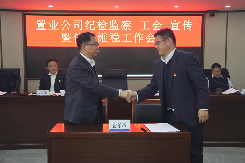 會議對2019年紀檢監察、工會、宣傳、信訪維穩工作進行安排部署,公司黨委書記、總經理李奮旭分別與各單位簽訂《2019年黨建工作目標責任書》、《2019年信訪目標責任書》、《2019年黨風廉政目標責任書》。