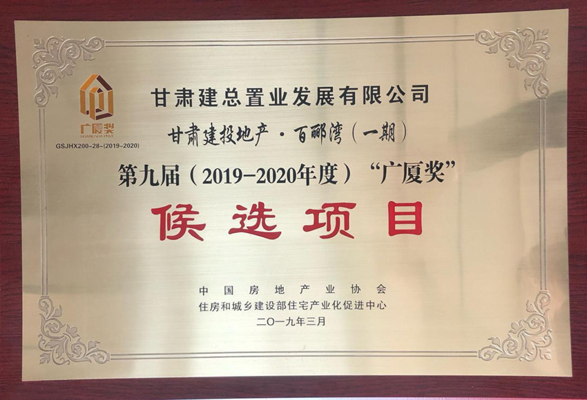 4月11日,在中國房地產協會各地房協會長、秘書長工作會議上,“甘肅建投地產•百酈灣(一期)”項目入選第九屆(2019—2020年度)“廣廈獎”候選項目。